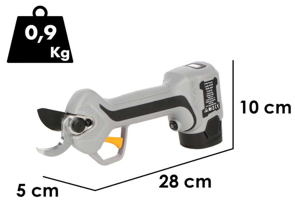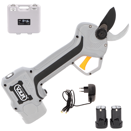 Volpi KV295 is een licht en praktisch accusnoeischaar, ideaal voor de professional maar ook voor de veeleisende particulier. De maximale opening van de stalen messen is 28 mm. Tevens is de Volpi KV295 uitgerust met een borstelloze motor en de snelle stand-by functie. Deze zorgt ervoor dat de accu wordt gespaard wanneer hij niet wordt gebruikt. Het innovatieve display is uitgevoerd met teller voor aantal snoei- en knipbeurten en een de indicator voor het batterijniveau. De snoeischaar wordt geleverd in een praktische koffer en is uitgerust met: 2 premium lithiumbatterijen, een 3-voudige batterijlader, holster, slijpsteen, steeksleutel voor vervangen van mes en smeermiddel voor mes en tandwieltjes.