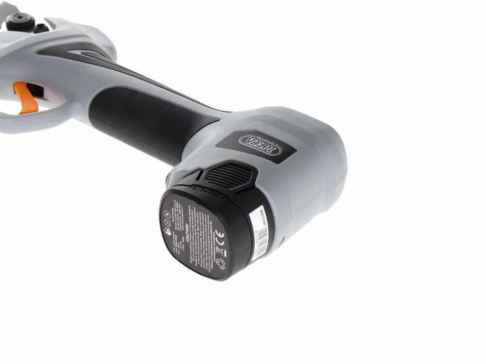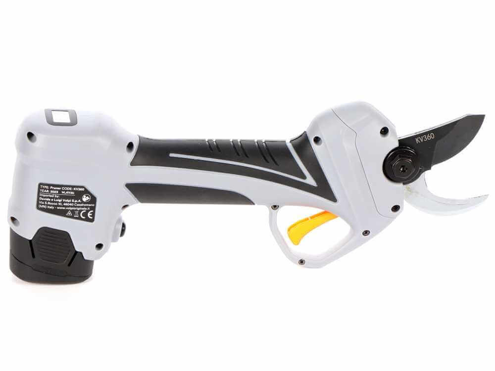 Volpi KV360 accusnoeischaar is een professionele draadloze snoeischaar met lichtgewichte ontwerp en geavanceerde technologie. De maximale opening van de stalen messen is 32 mm. Uitgerust met een borstelloze motor en de snelle stand-by functie welke zorgt ervoor dat de accu wordt gespaard wanneer hij niet wordt gebruikt. Het innovatieve display is uitgevoerd met teller voor aantal snoei- en knipbeurten en een de indicator voor het batterijniveau. De Volpi KV360 wordt geleverd in een praktische koffer en is uitgerust met: 2 premium lithiumbatterijen, een 3-voudige batterijlader, holster, slijpsteen, steeksleutel voor vervangen van mes en smeermiddel voor mes en tandwieltjes.